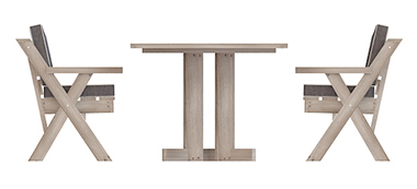 the deck in heavy storms. A simple balustrade frame forms the legs and back,